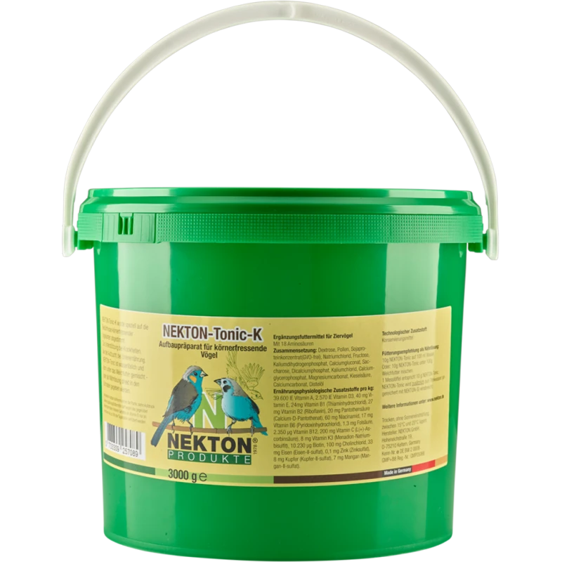 - NEKTON-TONIC-K est composé de plus de 60 substances individuelles diverses, dont l’action combinée donne un aliment de synthèse et d’appoint particulièrement équilibré.