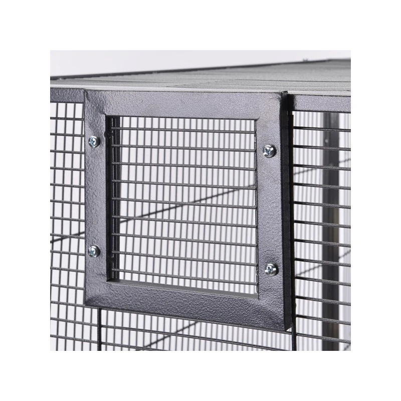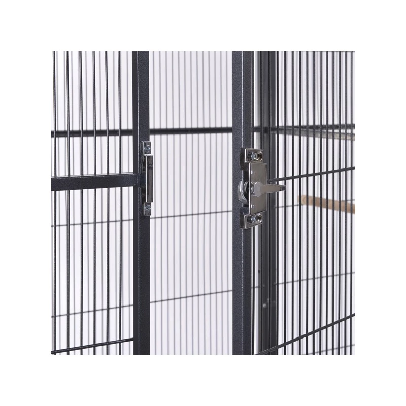 Le Sydney offre suffisamment d’espace pour les pinsons, perruches, petits perroquets & co. Grâce au tiroir à déjections coulissant et aux roulettes stables, le Sydney est également très facile à nettoyer. La livraison comprend deux bols en plastique pour la nourriture et l’eau, ainsi que des perchoirs pour la configuration initiale. Grâce à la porte spacieuse, chaque coin de la cage est facilement accessible. Le Sydney I dispose également d’une « porte d’élevage » pour fixer un incubateur ou un bain public !